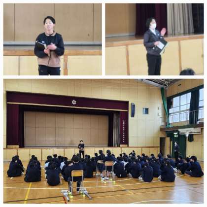 本日は朝からすべての学年が集会を行っています。担当の先生から新しい学年が始まるにあたってお話をしてくれています。