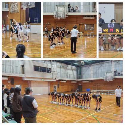 しかし後半は徐々にペースをあげてディフェンスから速攻、3Pシュート、1対1が決まりだし終わってみれば49対15と圧勝しました。女子バスケ部の皆さん、おめでとうございます。来週もがんばってください。