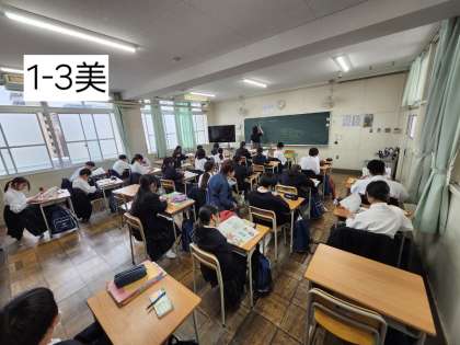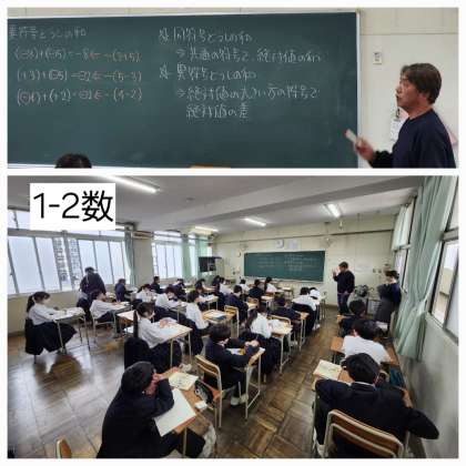 本日の1年生授業のようすです。数学では正負の数のたし算を習っていました。皆さん、頑張りましょう。