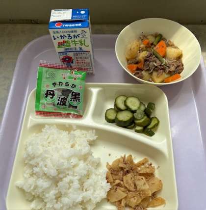 本日の献立は、肉じゃが・きゅうりの酢の物・ごまかかいため でした。