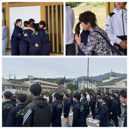 民泊体験お別れ式のようすです。代表の人からのあいさつのあとそれぞれの班に分かれて最後のお別れです。抱き合って別れを惜しむシーンもありました。
