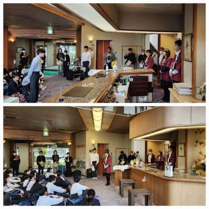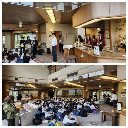 退館式のようすです。いよいよホテルを出発し名古屋へ向かいます。