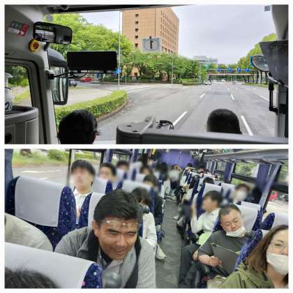 名古屋市内班別行動を終え、バス乗車しました。これこら大阪へ帰ります。