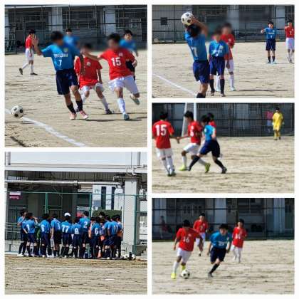 本日はサッカー部が春季総体大阪市予選1回戦に挑みました。3年生は前日に修学旅行から帰ってきたところで、練習不足と疲れが残る中の試合となりました。前半は一進一退の攻防でお互い決め手にかける展開となりました。