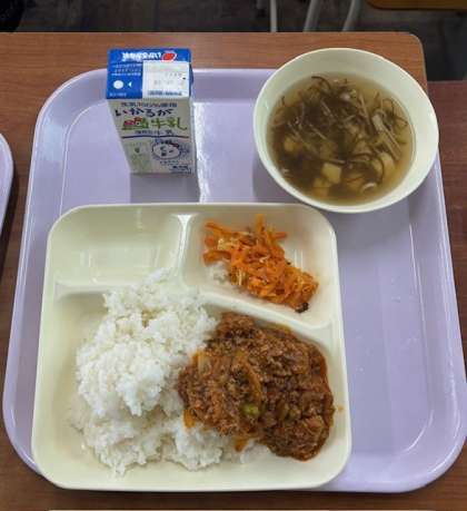 本日の献立は、タコライス・とうふともずくのとろりじる・にんじんしりしり風 でした。