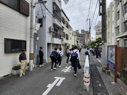 本日の朝登校のようすです。くもり空で午後から雨予報です。今週最後の日です。また来週は中間テストです。頑張りましょう。