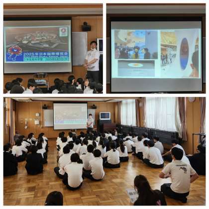 2年生が万博校外学習に向けて事前学習を行いました。皆さん、興味津々で聞いていました。