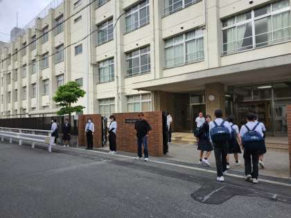 本日の朝登校のようすです。今朝もくもり空で比較的気温も穏やかです。今週は木曜日からテストです。頑張りましょう。