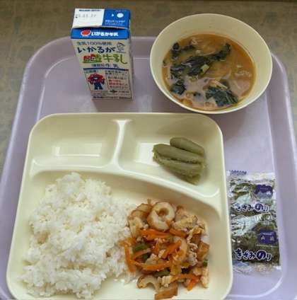 本日の献立は、かやくご飯・みそ汁・抹茶ういろう でした。