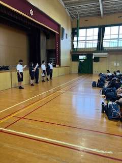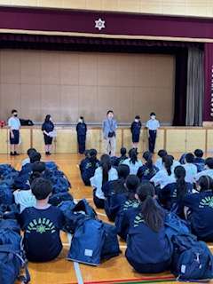 ?出発式は各学級代表の発売があり、教頭先生からは88名全員で安全、安心の一泊移住にしていきましょうとのお話がありました。