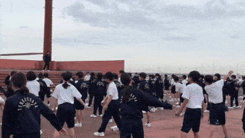 ラジオ体操のようすです。2日目もがんばりましょう。