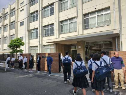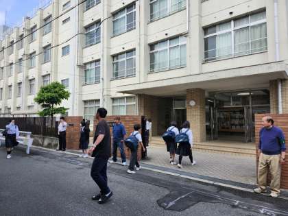 本日の朝登校のようすです。昨日までの雨もあがり、少し暑さを感じる日となりました。今日も一日頑張りましょう。
