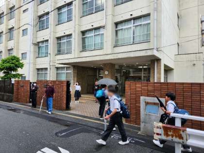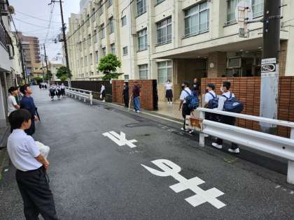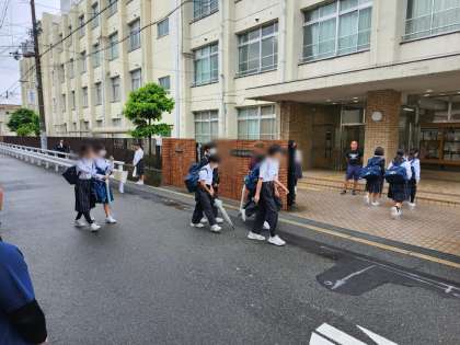 本日の朝登校のようすです。早朝まで降っていた雨も登校時には止んでいました。今日は3年生が第1回実力テストです。がんばってください。