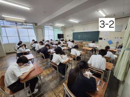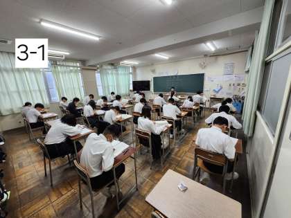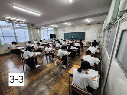 本日は3年生が実力テストに挑んでいます。定期テストとは違って出題範囲が広い実力テストですが、高校受験に向けて実力をつけていけるようにがんばってください。