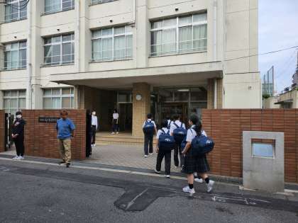 本日の朝登校のようすです。今朝も朝から気温の高い日となっています。体調管理に気をつけて過ごしましょう。