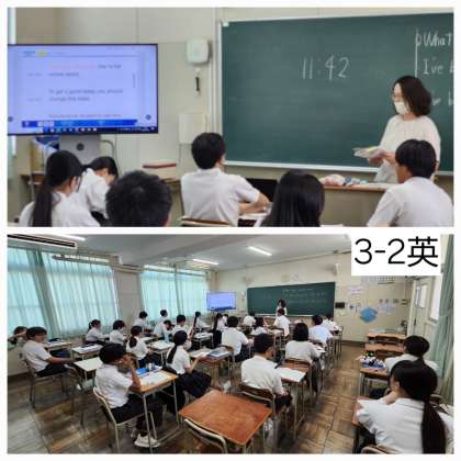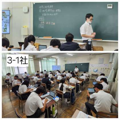 3年生の授業のようすです。社会ではタブレットを使って調べ学習をしていました。