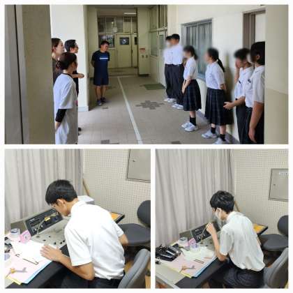 本日は昨晩の雨でグランド状態が悪いため放送による全校集会を行いました。校長先生から気温の高さで熱中症対策を十分にとってほしいというお話をしました。生徒会の担当の人からは習慣化(続けることの大切さ)についてお話してくれました。