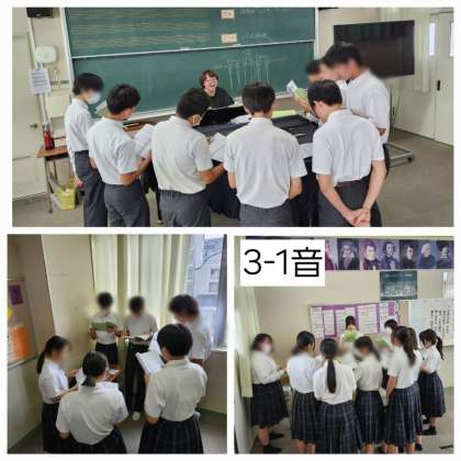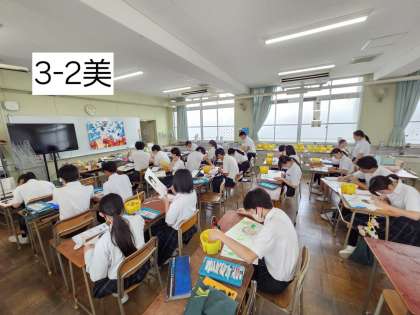 3年生授業のようすです。美術では自画像を描いていました。音楽では合唱コンクールに向けてパート練習をしていました。