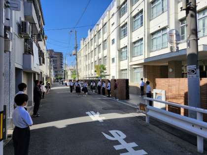 本日の朝登校のようすです。今朝は昨日よりも暑さを感じる日となっています。頑張りましょう。