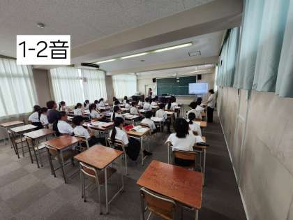 1年生授業のようすです。音楽ではアルトリコーダーの練習をしていました。
