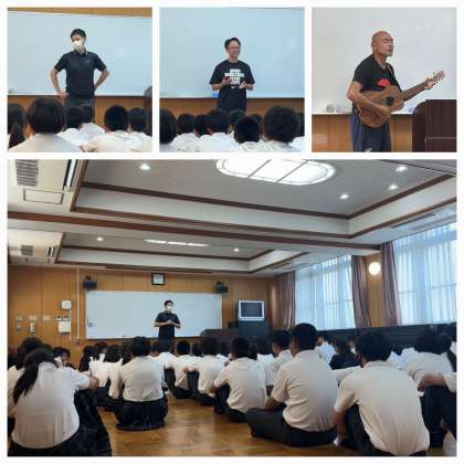 学期終わりの学年集会として夏休みの過ごし方などのお話がありました。また、担当の先生からは楽しい出し物も披露してくれて、子どもたちにも好評でした。