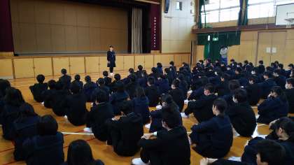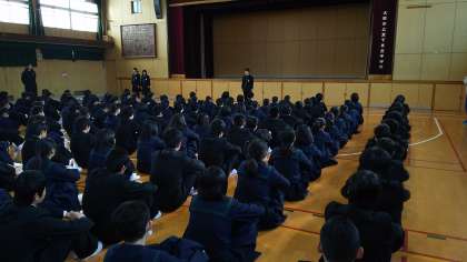 先日の合同集会では、3年生が2年生に、これからの学校生活で頑張るべきことについてアドバイスしてくれました。その事を受け、本日は2年生が、これからの学校生活に対する決意を述べました。