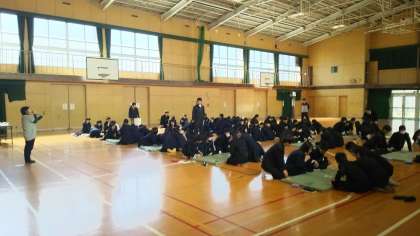 2年生の百人一首大会のようすです。この行事が2年生最後の行事です。チームで力を合わせて、全員が真剣に取り組んでいました。