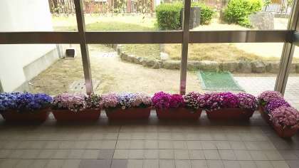 春休みも最終日を迎えました。明日は始業式です。全生徒が元気に登校してくれることを願っています。玄関先では、たくさんのきれいな花が生徒を迎えます。