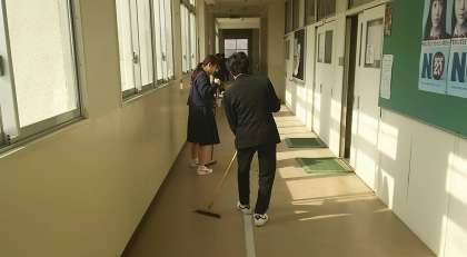 本校では、清掃も大切な教育活動と位置づけています。生徒たちは、毎日丁寧に分担箇所の清掃にあたっています。