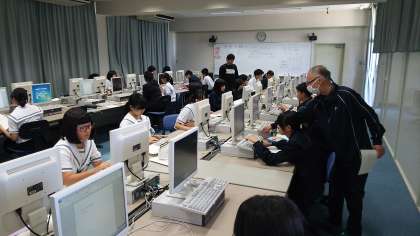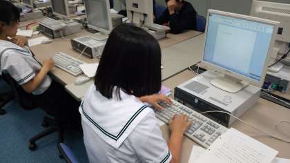 3年生の技術科の授業のようすです。本日は、ワープロソフトを使い、文字入力の練習として、新聞記事を入力しました。分からないところは、先生に質問したり、お互いに教え合いながら授業は進みました。