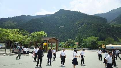 トイレ休憩のため、立川サービスエリアに寄りました。これから一路ラフティング会場に向かいます。