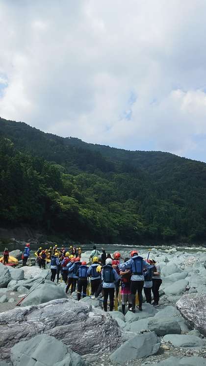 ラフティング会場に到着しました。ウエットスーツに着替え、これからもインストラクターによる注意があります。