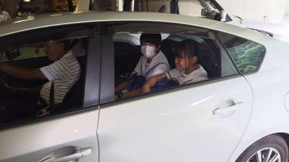 それぞれの民家の方の車に乗せていただき、笑顔で出発していきました。