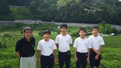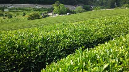 森川さん宅のようすです。家の周辺は茶畑が広がっており、日本の原風景を感じさせてくれます。イブキの香りも漂っていて、心が落ち着きます。ヒバやマキの出荷前作業をさせていただきました。