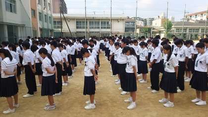 本校では、毎年8月6日に平和人権登校日を実施しています。広島で行われている平和記念式典の放送の一部を聞き、原爆投下時刻の8時15分に全員で黙とうをささげました。その後、各学年に分かれて平和学習をおこないました。