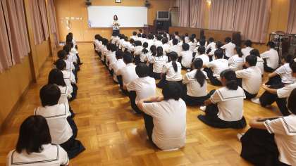 3年生の今朝の学年集会のようすです。先生の進路の話に続き、学級代表から全体に向けてのメッセージを伝えているところです。3年生は、そろそろ進路に向けて大きな動きが出てきました。