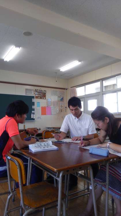 本校、橘小学校、天下茶屋小学校の英語・外国語活動担当教員による打ち合わせのようすです。小学校の外国語活動と中学校の英語の接続を円滑にするための会議をしています。