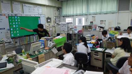 大阪市教育委員会より、タブレット端末40台が配布されました。本校では、授業改革として、デジタル教科書を使った授業展開などに取り組み始めています。写真は、タブレット端末の授業での使い方について、担当教員より伝達研修を実施しているところです。