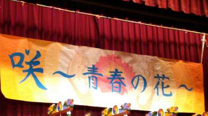 今年の発表会スローガンは「咲〜青春の花〜」でした。舞台上には、美術部が制作した、大きな横断幕が掲げられました。学年、部活動、生徒会、PTA、いずれの発表もすばらしいものでした。