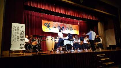 吹奏楽部による演奏です。「PERFECT HUMAN」「Sing Sing Sing」「2015メドレー」の3曲を演奏しました。聞く人を元気にしてくれる演奏でした。
