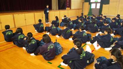 出発式のようすです。出発式全ての進行は、生徒が行っています。まもなく、天下茶屋駅に向かいます。
