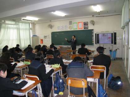 1月18日、土曜授業を行いました。1・2限目は授業参観を実施。その後、外部講師を招き、生徒・保護者を対象に「ケータイ教室 安心安全講座」を開きました。「ケータイ教室」では、携帯電話の持つ危険性や、マナーやルールについて、具体例を挙げながら詳しく教えていただきました。ケータイはただの道具。コミュニケーションツールとして正しく使うのは、それを持つ人の意識にかかっているということがよく分かりました。