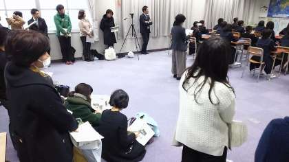 大阪市教育委員会主催の中学校英語イノベーション研修が本校で実施されました。多くの英語科教員が参加し、本校の岡田啓佑教諭が研究授業を行ないました。研究授業の後は研究協議を行ない、立命館大学の湯川笑子(ゆかわ えみこ)教授よりご指導をいただきました。子どもたちも、少し緊張していたようです。