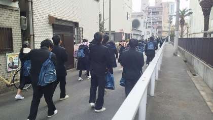 本日はとても寒い日になりましたが、多くの3年生が私立高等学校の出願にいきました。担当の先生から諸注意を受けて、緊張した面持ちでそれぞれの高等学校へ出発しました。頑張れ3年生!!