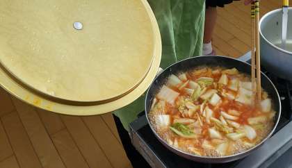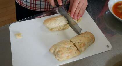 2年生の家庭科授業のようすです。本日は子どもたちにとって楽しみの調理実習でした。メニューは白菜のトマトスープと手作りパンでした。どの班も、とても上手にできました。