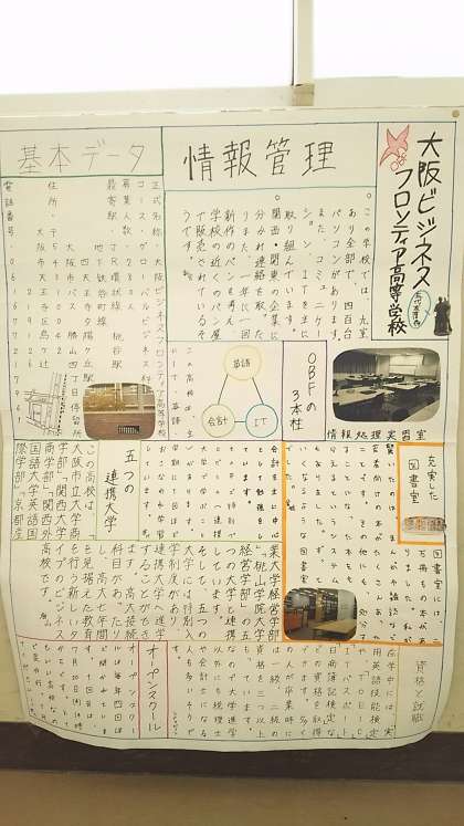 先日、2年生では高校見学をおこないました。子どもたちがそれぞれの高等学校で集めてきた情報を壁新聞にし、2年生のフロアに掲示しています。保護者の皆様も、いつでもご覧いただくことができます。ご来校の際は、教頭にお声がけください。