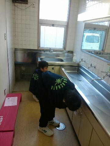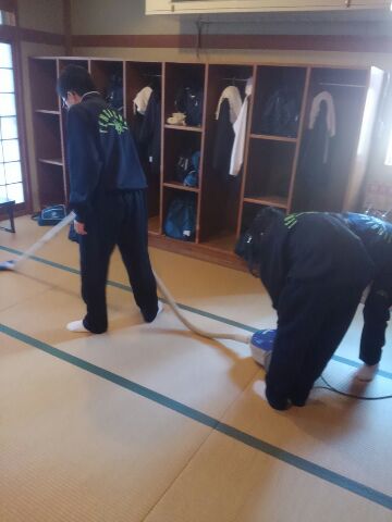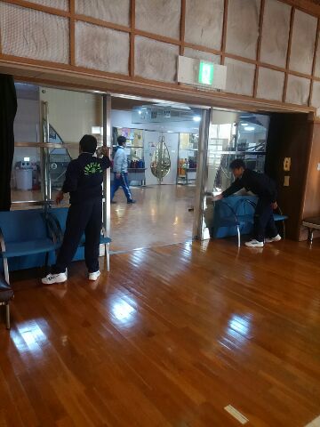集会のあと、自分たちの使った施設を徹底的にきれいに掃除をします。これも、今回の宿泊オリエンテーションの大切な学習項目です。
