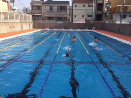 水泳部では、この連休中にプールの大掃除を行ない、プールでの練習を始めました。まだ少し水は冷たく感じますが、しっかりと泳いでいました。