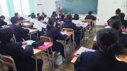 1年生英語科の授業のようすです。本日は、アルファベットの正しい発音について、C−NET(Osaka City Native English Teacher)から学びました。