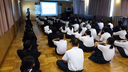2年生は、7月に職場体験を行います。本日は、進路指導主事より、職場体験に向けての授業がありました。